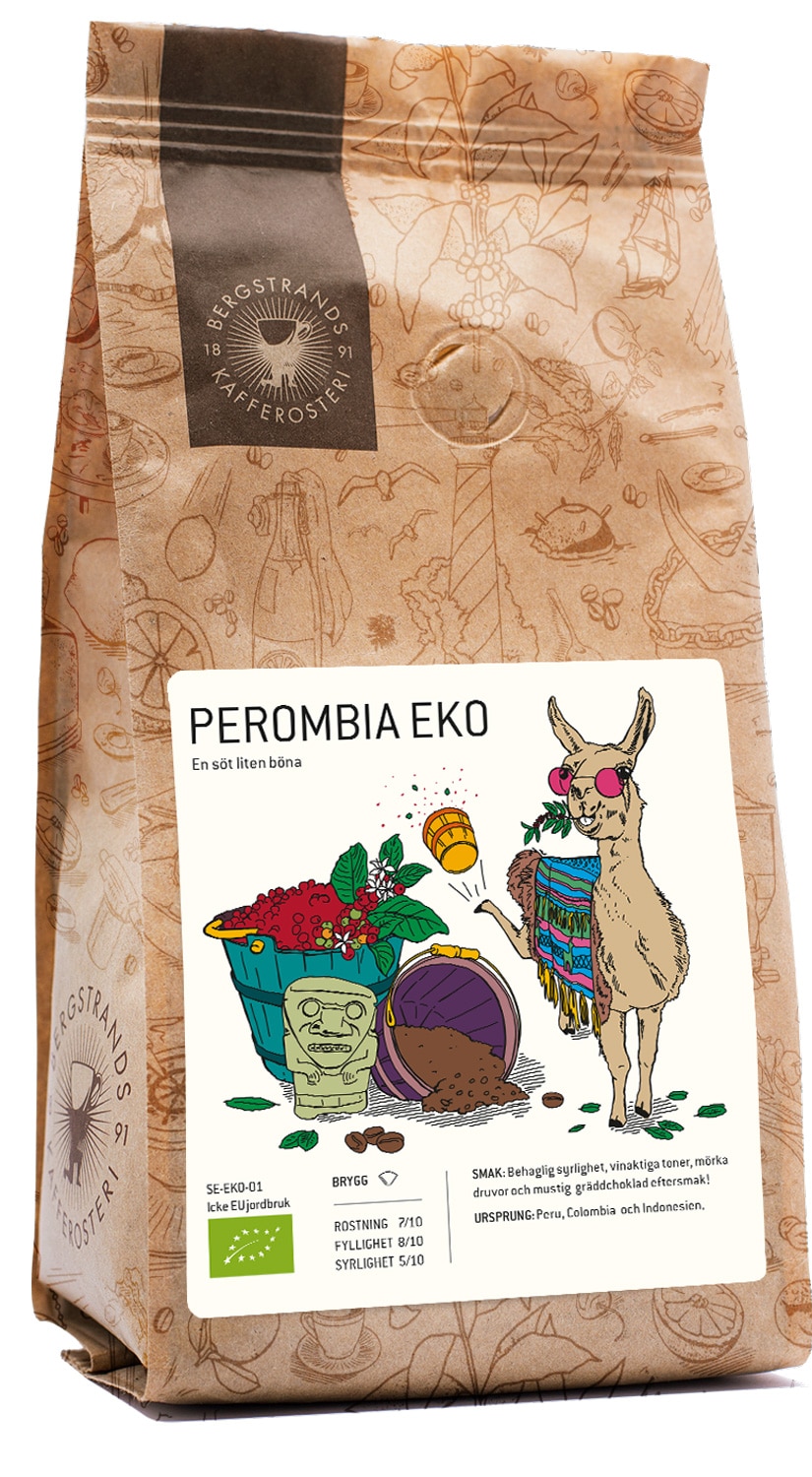 Perombia är en av våra ekologiska favoriter med tydliga karaktäristiska drag från dess ursprungsländer. Blandningen har en bas på bönor från södra delen av Colombia i Huila distriktet med tydlig fruktig syra, vindruvor och plommon.