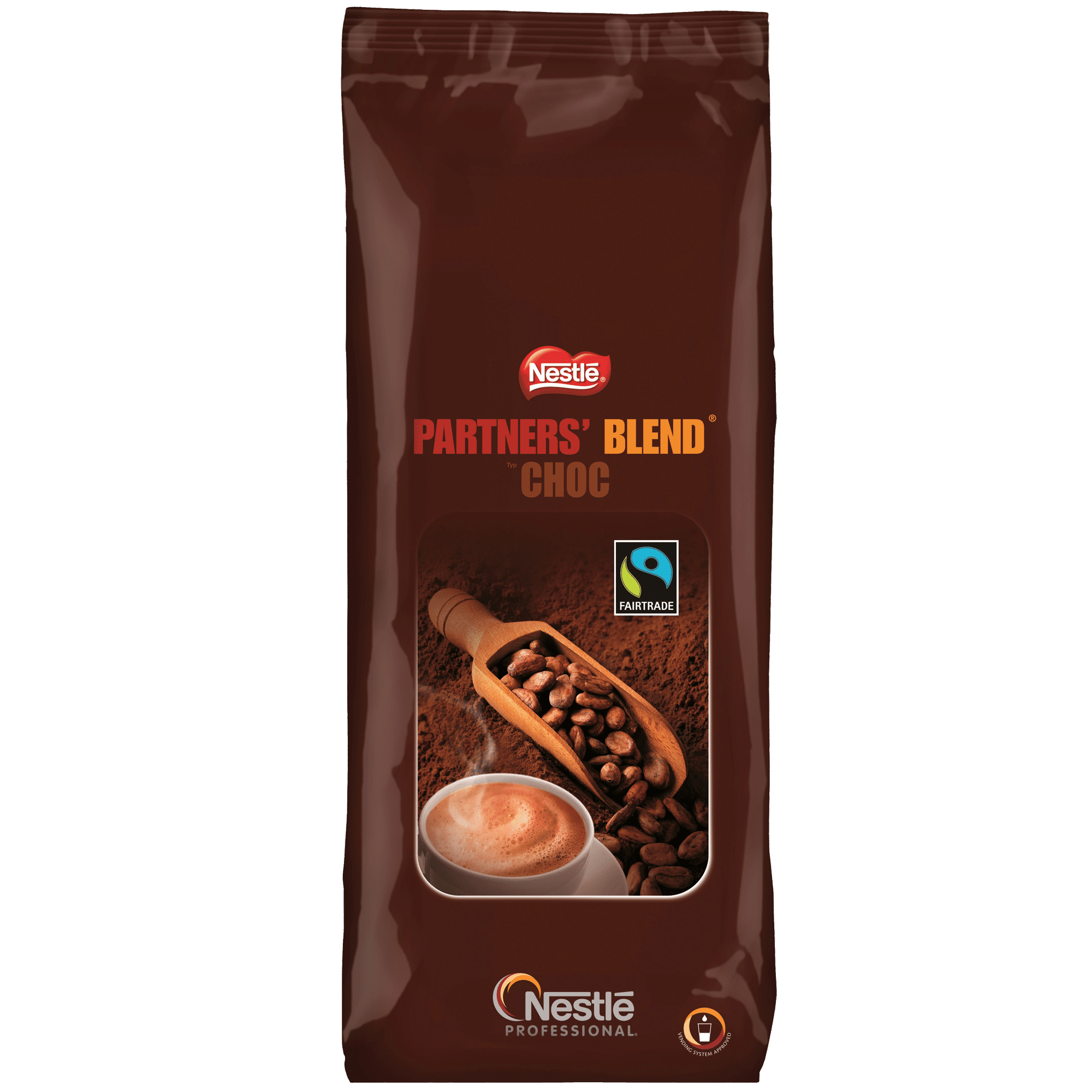 Chokladpulver Nestlé 1000g Partners´ Blend Choc är ett Fairtrade-certifierat chokladdryckspulver med rund och god smak. Innehåller kakaobönor från noga utvalda plantager i Dominikanska republiken.En mellanmörk choklad med tydliga toner av fudge och smörkola med en eftersmak av ljus sirap.