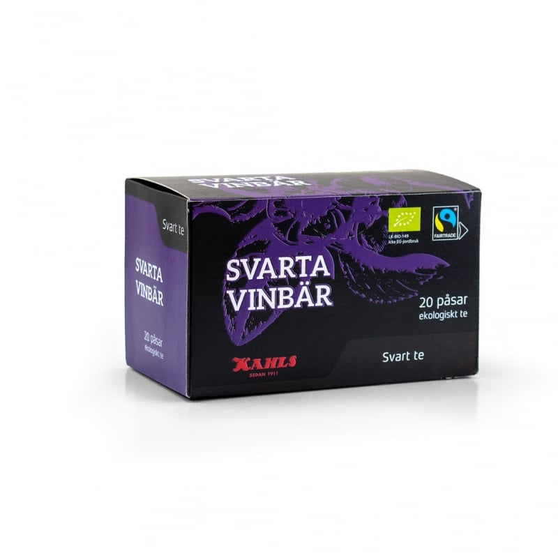 Svart fairtrade ekologiskt te från Sri Lanka, i kuvertpåse smaksatt med svartavinbär. Teet är fruktigt och bärigt, en påse passar perfekt till en kopp, både med och utan mjölk.