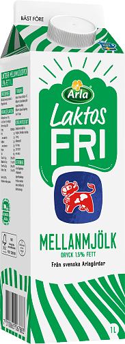 Laktosfri mellanmjölkdryck gjord på svensk mjölk från Arlagårdar. Mellanmjölkdrycken är framtagen för vuxna och barn med laktosintolerans och är därför fri från laktos. Den har en fyllig mjölksmak och är ett populärt val till frukostgröt, müsli och flingor men även som dryck till maten eller efter träning. Arla Ko® laktosfri mellanmjölkdryck är en naturlig källa till bland annat protein, kalcium och vitamin B12. Protein bidrar till muskeluppbyggnad och kalcium behövs för att bibehålla en normal benstomme. Varumärket Arla Ko® garanterar att produkten är gjord på 100 procent svensk mjölk.