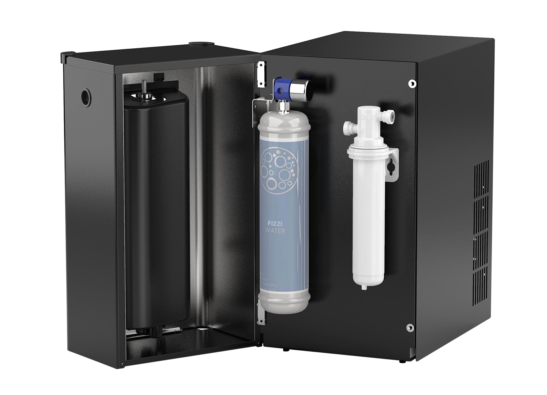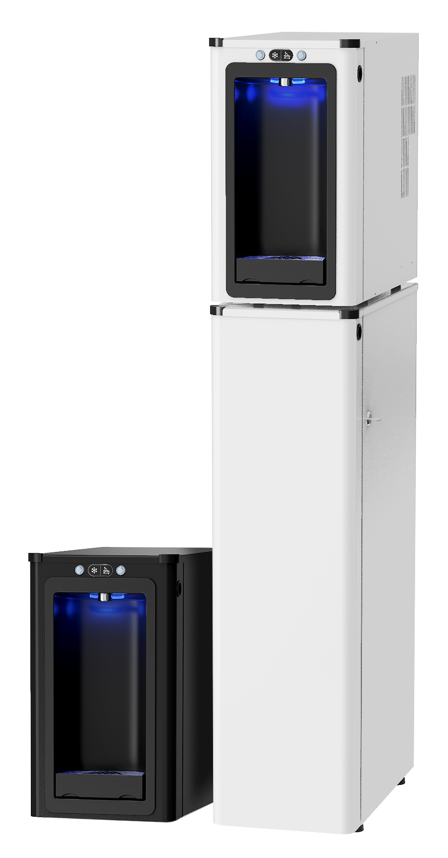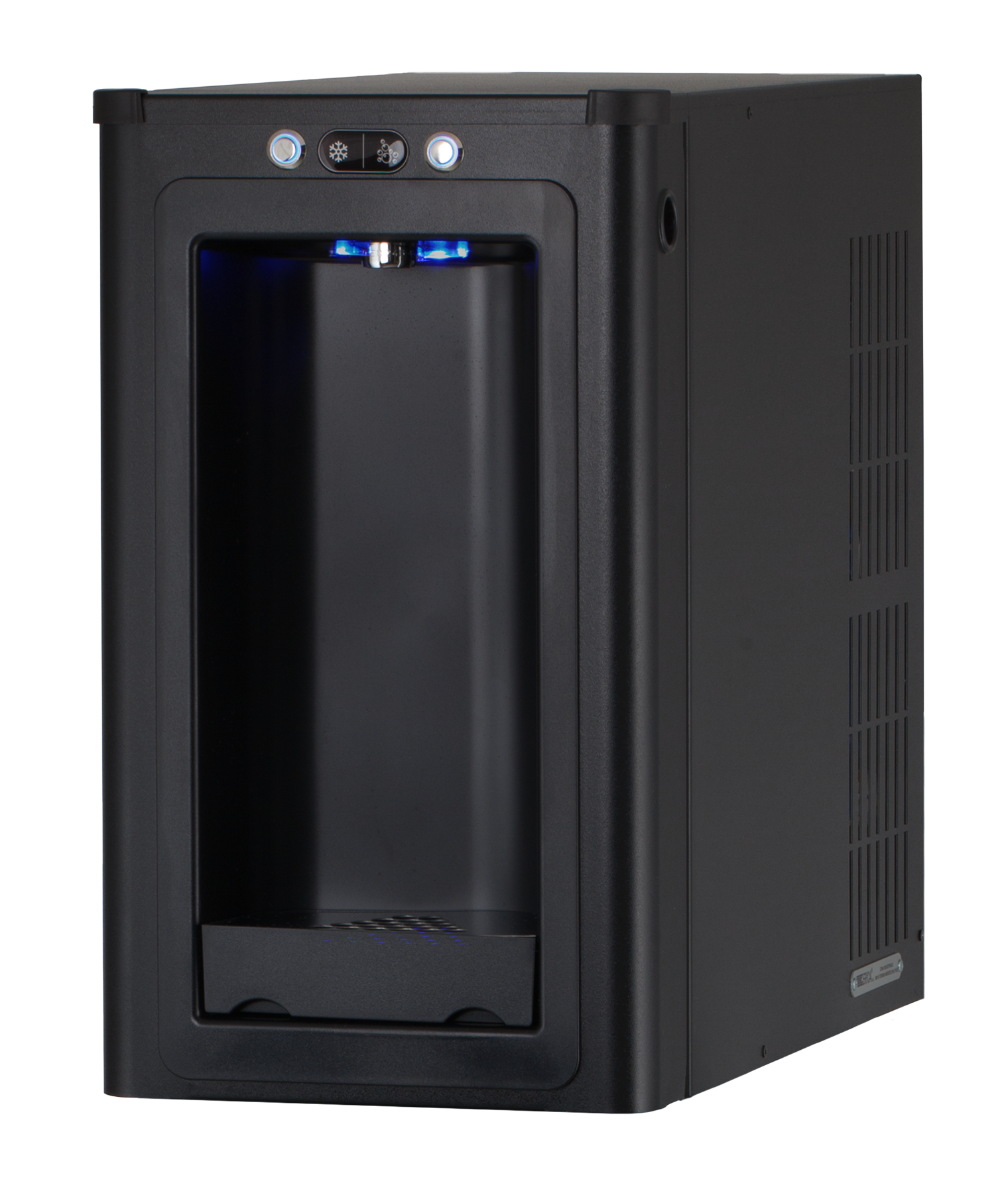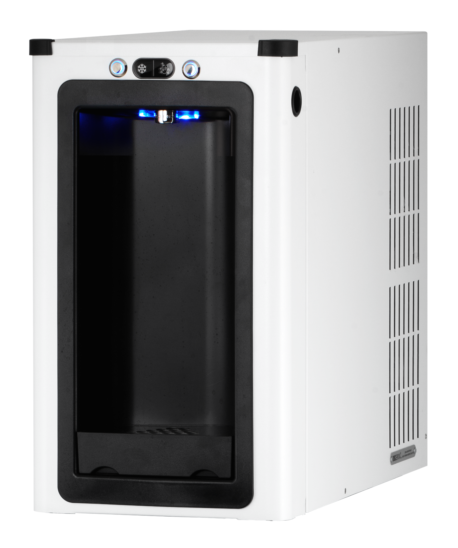Omnia serverar kylt stilla vatten och kylt kolsyrat vatten och modellen finns tillgänglig som bänkmodell i två färger (svart och vit lackad plåt), med förstärkta hörn i ABS, för att tåla även hårdare tag och miljöer med högt slitage och med kabinett som tillval. Vår nya vattenautomat placeras med fördel på det matchande underskåpet, där även större kolsyreflaskor kan placeras och kopplas direkt på automatens baksida.