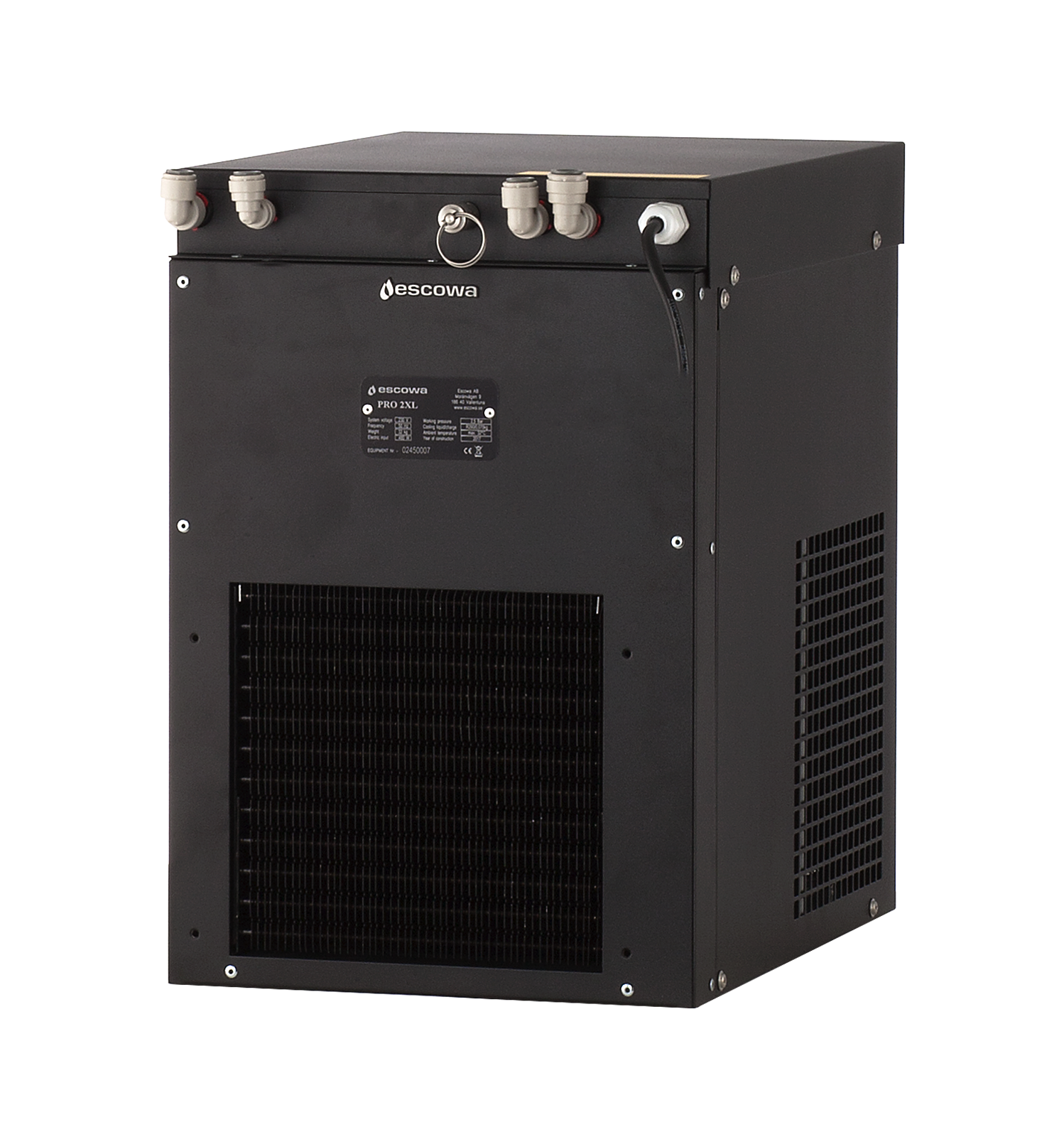 Miljövänligt kylmedium Vi använder miljövänligt kylmedium (R290/R600) i våra kylaggregat och följer därmed med god marginal de miljökrav som trädde i kraft 2020. Escowa Pro Water Coolers Vår kylarserie Pro Water Coolers är baserad på torrblock, vilket gör dem mycket effektiva för sin storlek, samtidigt som de är enkla att flytta och hantera. Kylaren levereras med anslutningsdetaljer för respektive användningsområde.